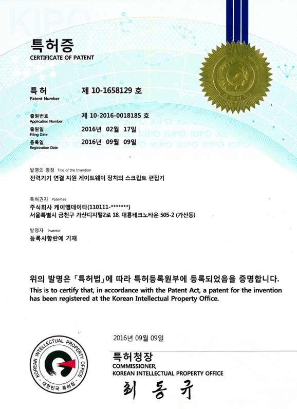 특허 무선 접속 기능이 부가된 전력 계측기에서의 계측 데이터 전송 방법 계전/계측기와의 정보교환 시스템 및 이에 사용되는 NFC모듈 무선 접속 기능이 부가된 전력 계측 시스템 전력기기 연결 지원 게이트웨이 장치 전력기기 연결 지원 게이트웨이 장치의 스크립트 편집기